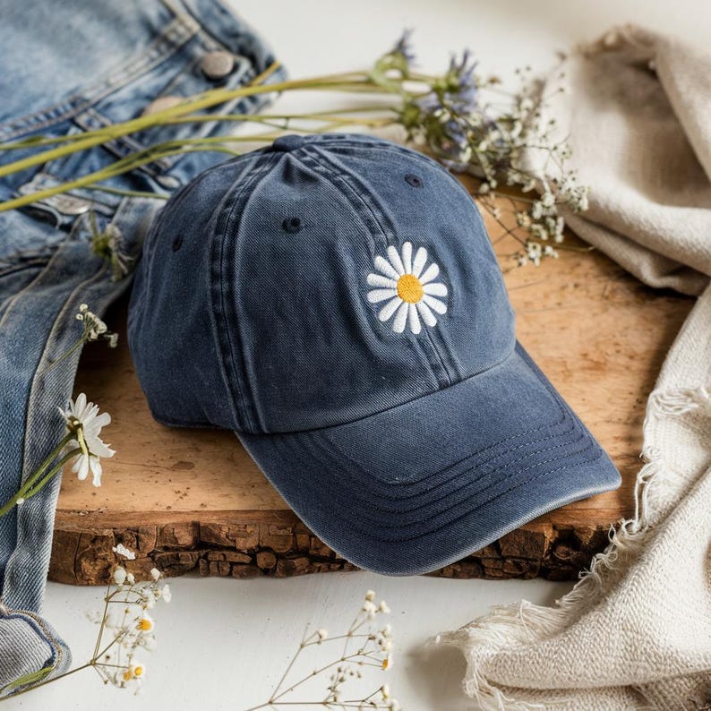 Embroidered Daisy Hat Vintage Denim Baseball Cap Cute Floral Dad Hat For Women Aesthetic Flower Hat Casual Adjustable Summer Cap Cottagecore Style Gift