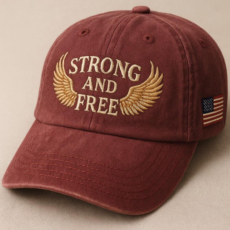 Embroidered Strong And Free Dad Hat Patriotic Wings Cap American Pride Washed Cap Freedom Motto Usa Military Gift