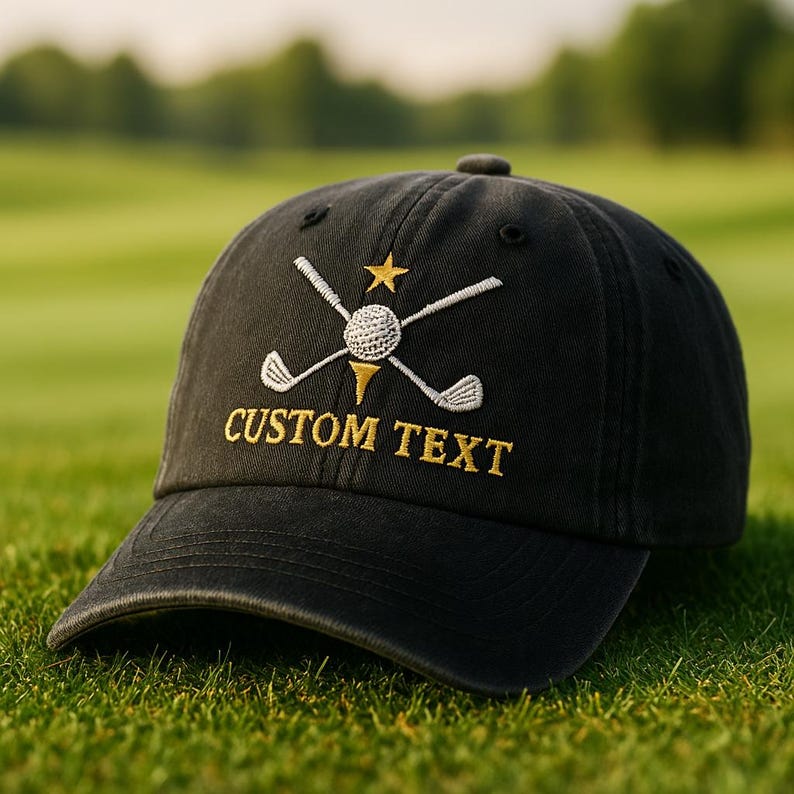 Custom Golf Hat Personalized Embroidered Baseball Cap with Golf Clubs, Ball and Star Design, Adjustable Sports Cap for Golfers, Unique Gift for Him or Her