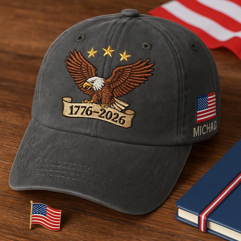 Embroidered Eagle Dad Cap, 1776-2026 US Bicentennial Washed Hat, Patriotic American History Cap, Custom Veteran Gift