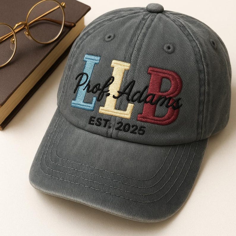 LLB Embroidered Dad Cap, Personalized Law Degree Hat, Custom Prof. Adams Graduation Gift, Est. 2025 Lawyer Baseball Cap