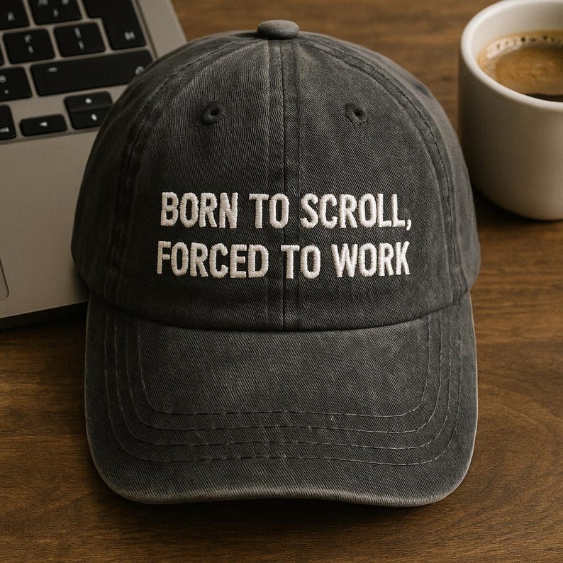 Embroidered Born To Scroll Hat Forced To Work Cap Funny Work Meme Wash Dad Cap Procrastination Gift Anti Work Slogan Cap