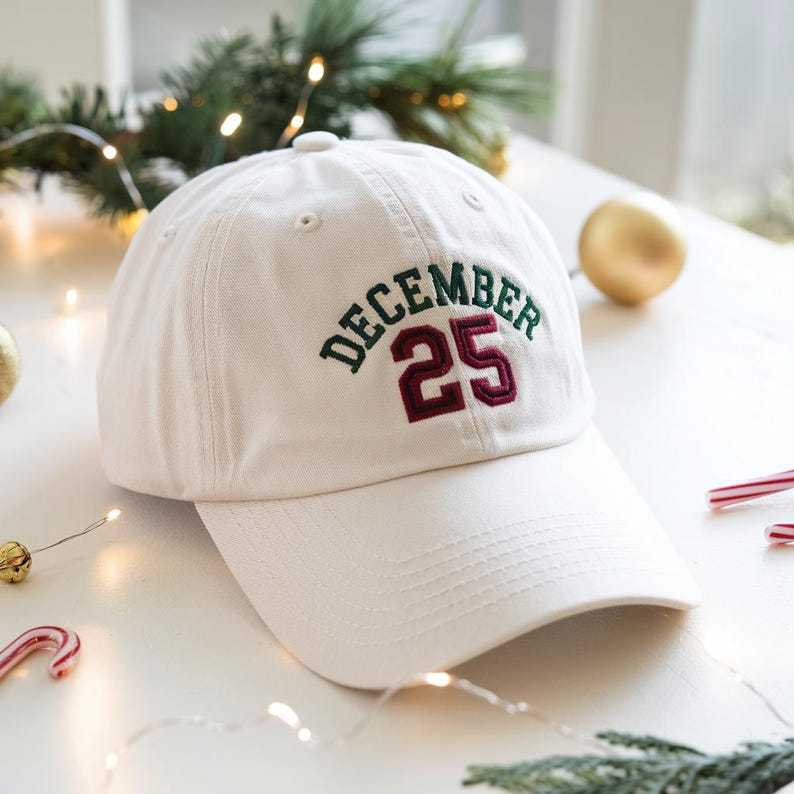 Embroidered Christmas Washed Hat December 25 Cap Holiday Clothing Womens Christmas Hat Christmas Cap Christmas Gift