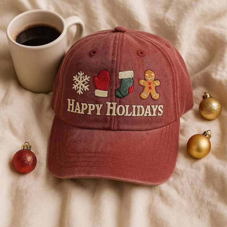 Happy Holidays Embroidered Dad Cap Christmas Gingerbread Man Hat Cute Holiday Mitten Snow Flake Stocking Embroidered Gift
