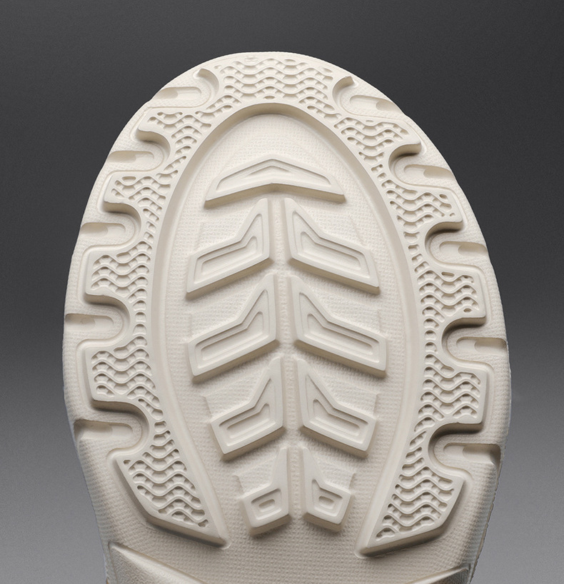 Polymer rubber outsole, comfortable and flexible, with enhanced slip resistance on stairs, cushioning, anti-slip, and wear resistance for safer walking.