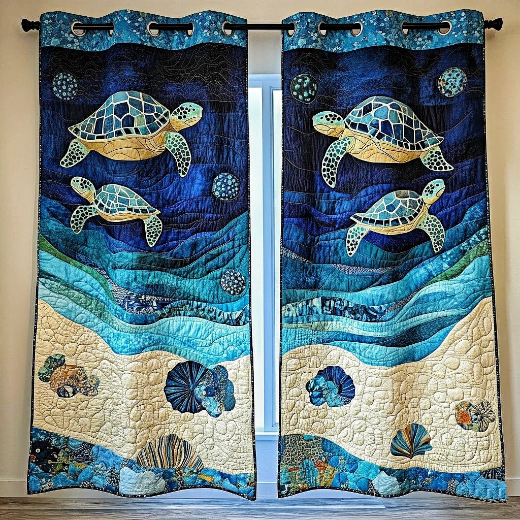 Sea Turtle & Underwater Scene Embroidered Knitwear Quilted Curtains