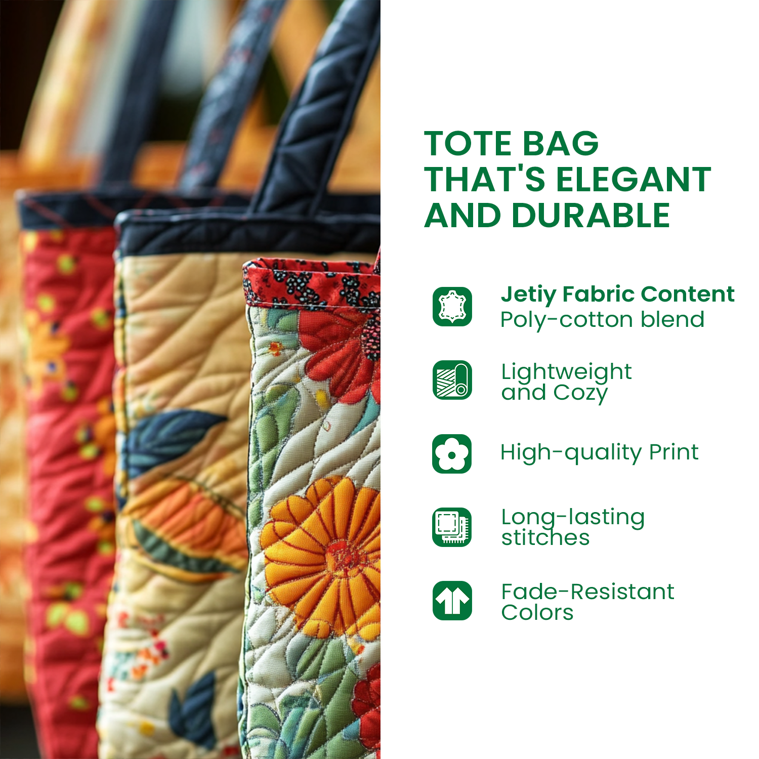 Looking for a tote bag that’s both fun and functional? Our quilted tote bag is thoughtfully designed to make everyday carrying easier—while adding a fun, festive touch to your look. Perfect for everyday use or seasonal outings, this bag combines sturdy construction with charming prints to brighten up any outing. It’s the perfect combination of practicality and personality!